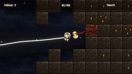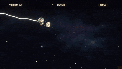You are always tied to your ship with a rope. Moving uses oxygen. If your O₂ reaches zero, the rope pulls you back to the ship and you lose all Yolkium you carry.